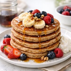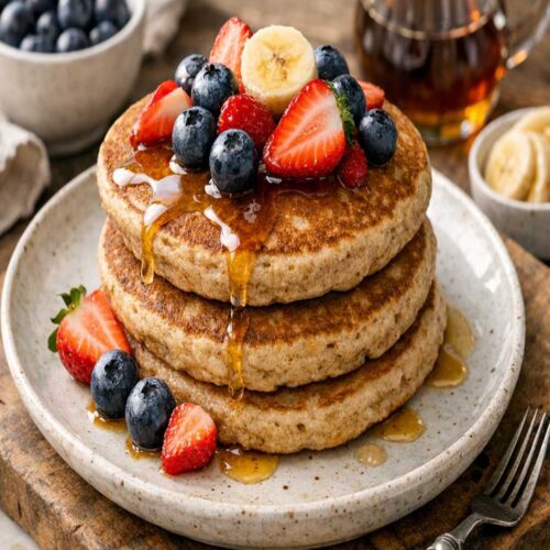 I still remember weekend mornings at my grandmother’s house, the smell of fresh pancakes filling every corner while she flipped them with the kind of ease that only comes from decades of practice. What struck me most wasn’t the fancy ingredients—it was how simple the recipe was, yet how loved those pancakes made us feel. That’s exactly what I’m sharing with you today: 3 ingredient whole wheat pancakes that taste like comfort but deliver real nutrition. They pair beautifully with fresh berries, a drizzle of maple syrup, or even a dollop of Greek yogurt. If you’re looking to balance indulgence with wholesome eating, explore my Food Faith Fitness philosophy—it’s all about creating meals that nourish both body and soul.
