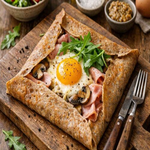 - Savory breakfast: Fill with a fried egg, ham, and Emmental cheese. Add a pinch of Dijon mustard if you want brightness. Buckwheat’s earthiness pairs beautifully with eggs.