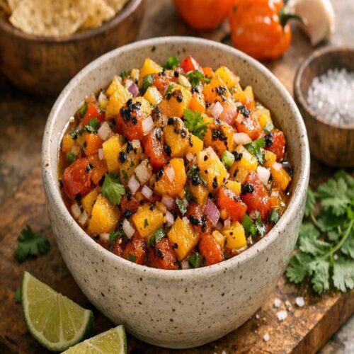 I grew up in my grandmother’s kitchen in New Hampshire, where she’d teach me that the best meals always start with something alive on your plate. Fresh ingredients, bold flavors, real warmth. This roasted habanero mango salsa embodies exactly that philosophy—it’s the kind of condiment that transforms ordinary grilled chicken into something memorable, pairs beautifully with crispy tortilla chips, and makes your guests ask for the recipe before they’ve even finished their first bite. Whether you’re planning a casual weeknight dinner or hosting friends for a backyard gathering, this salsa brings the kind of vibrant, smoky-sweet energy that makes people linger at the table just a little longer. It’s also fantastic alongside Filipino Chicken Asado if you’re feeling adventurous with your global flavors.