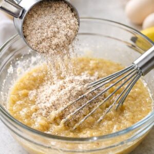 In a large mixing bowl, crack your two room-temperature eggs directly into the bowl. Using a whisk, beat them together vigorously for about 30-45 seconds until they're pale and slightly frothy. This isn't just mixing—you're incorporating air, which becomes crucial for structure since we don't have baking powder here.