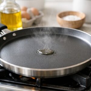 To test readiness, flick a few drops of water onto the surface. They should dance and evaporate almost immediately—not sit there sizzling slowly, and not vanish in a fraction of a second. That's your sweet spot. If you're using a regular skillet instead of a griddle, this matters even more because heat distribution is less even.