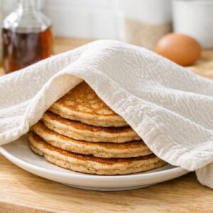 Transfer your finished pancakes to a plate and loosely cover them with a clean kitchen towel. The towel traps steam without creating condensation that would make them soggy. This keeps them warm while you cook the remaining batter, and it's a trick I learned from professional kitchens that home cooks often skip.